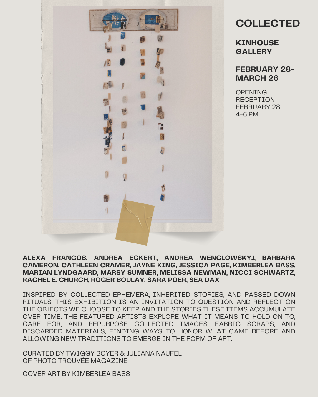 She Taught Me - Mixed Media Assemblage: wood, silver platters, coffee filters, metal, found object, ephemera, vintage photographs, sting, paint, ink 95×38×3