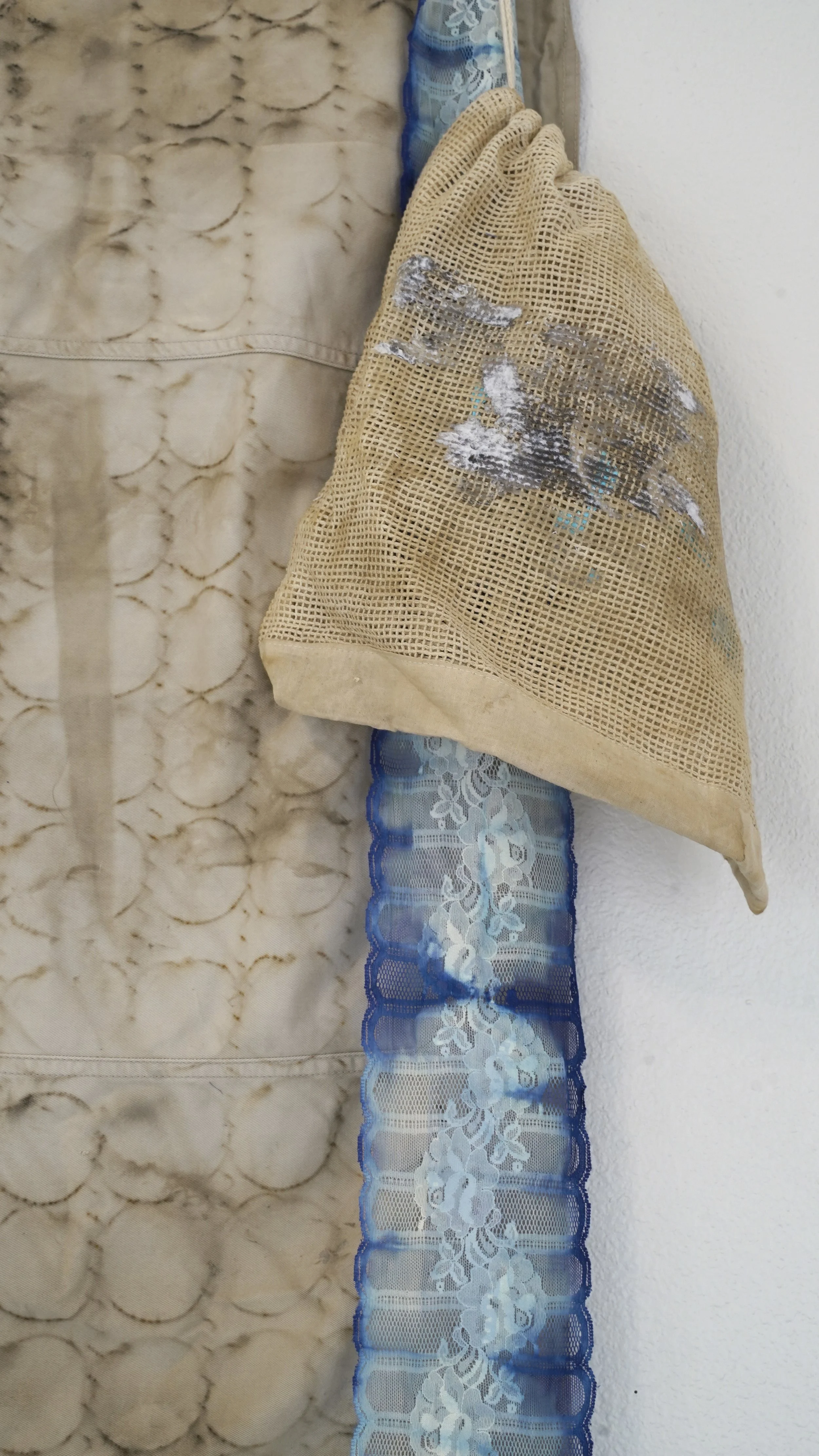 This collection of textiles is stained with what is left behind and imprinted on to the parts of us that remain.